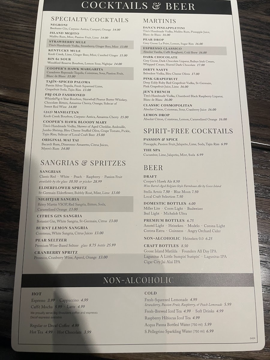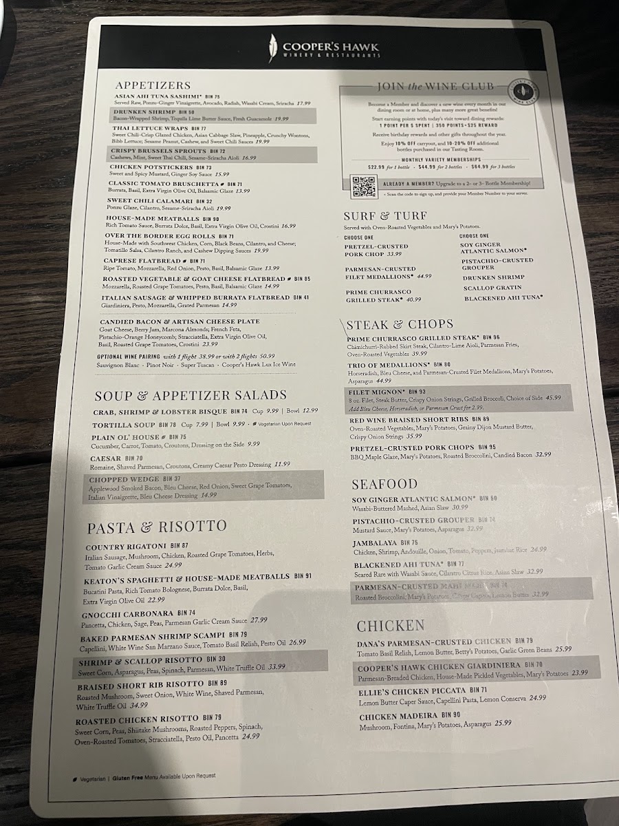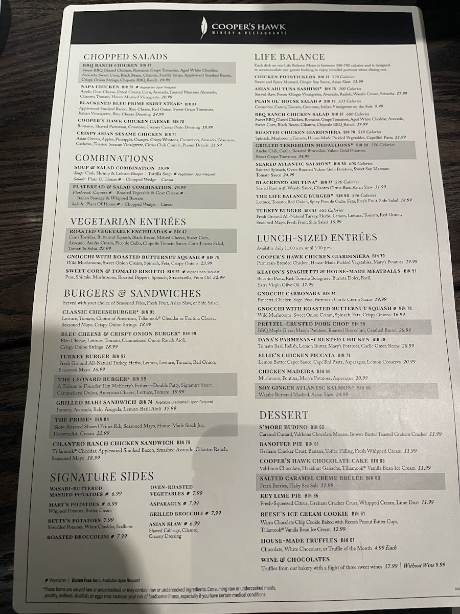 Cooper’s Hawk Winery & Restaurant- Middleton Menu (Update 2025)